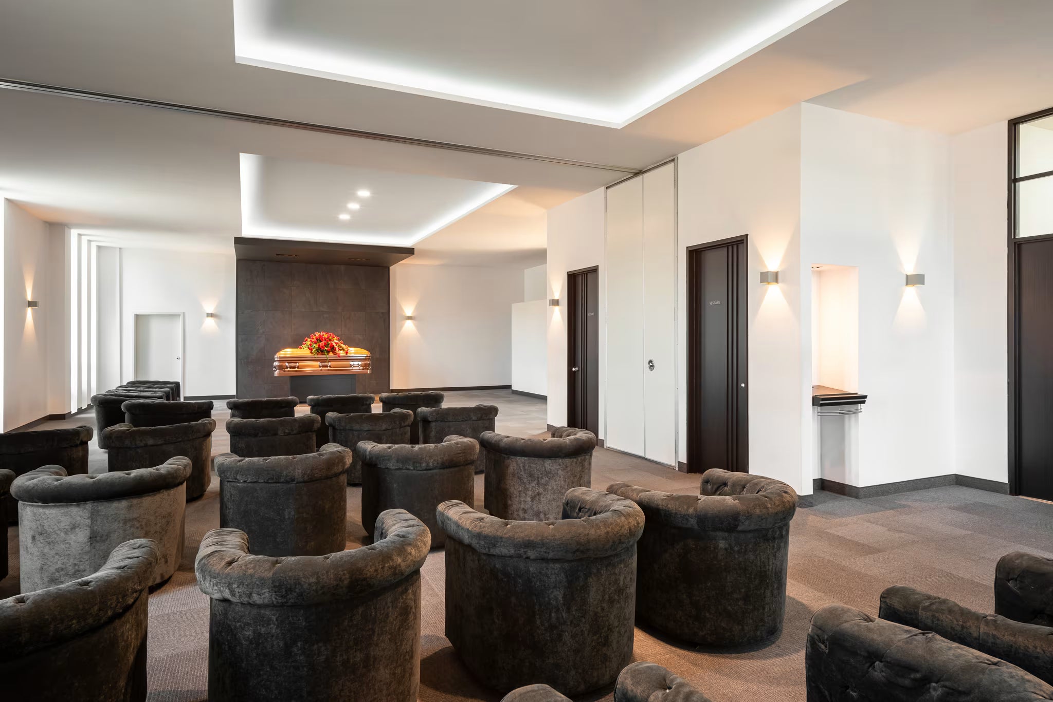 Notre complexe est doté de vastes salles mortuaires propices au recueillement avec des espaces réservés, des fauteuils, des tables et vestiaires.