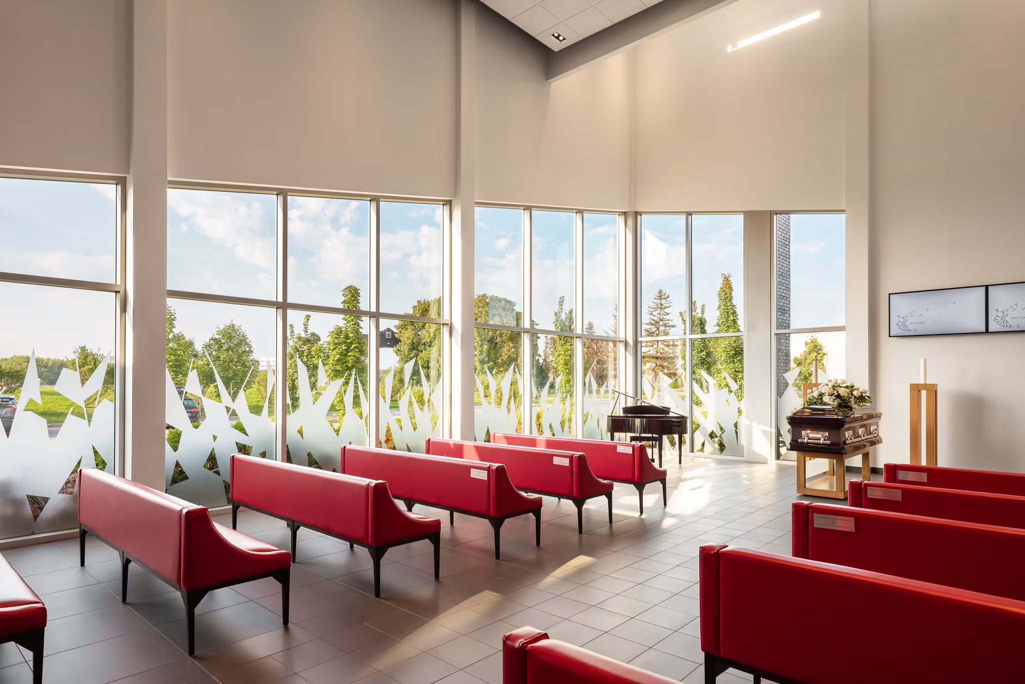 Le complexe Sainte-Dorothée est unique par son architecture audacieuse. Il dispose d’une vaste chapelle dotée d’un chœur baigné de lumière sur deux étages. C’est un lieu absolument splendide et propice à la célébration des funérailles.